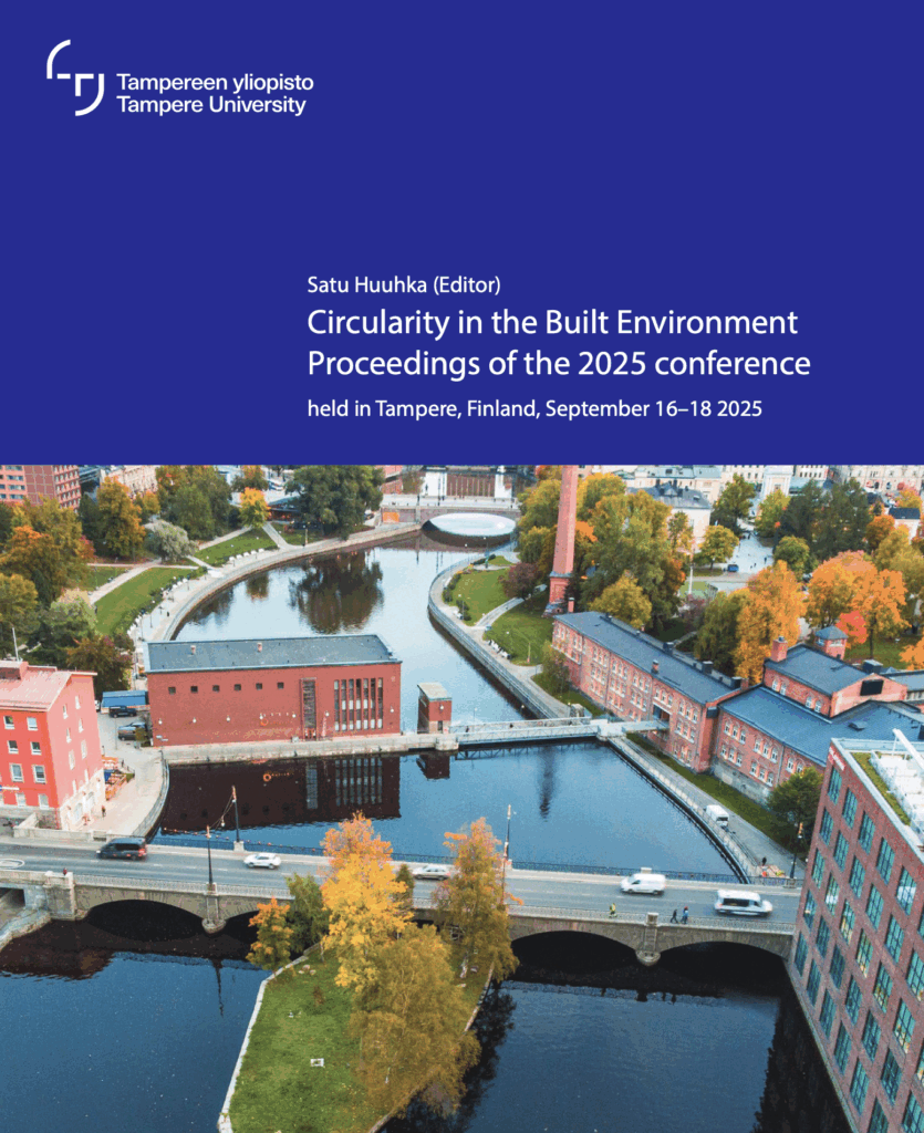 CiBEn-konferenssissa 2025 Tampereella esitetyt tutkimukset ovat koottuna yhteen julkaisuun: Huuhka, S. (Ed.). 2025. Circularity in the Built Environment: Proceedings of the 2025 conference held in Tampere, Finland, September 16–18 2025. Tampere: Tampere University.