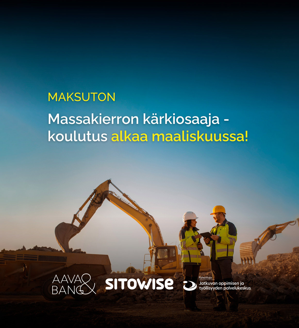 Aava & Bang ja sitowise tarjoavat yhteistyössä konkreettista tukea maa- ja kiviaineskiertotalouden edistämiseen maksuttomilla Massakierron kärkiosaaja-verkkokoulutuksilla. Käynnistämme kaksi uutta (rakennusalalle ja julkisiin hankintoihin suunnattua) koulutuskokonaisuutta, joissa pureudutaan massakierron konkreettisiin ratkaisuihin: